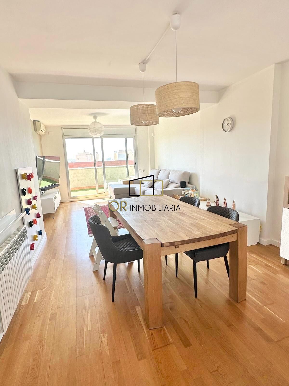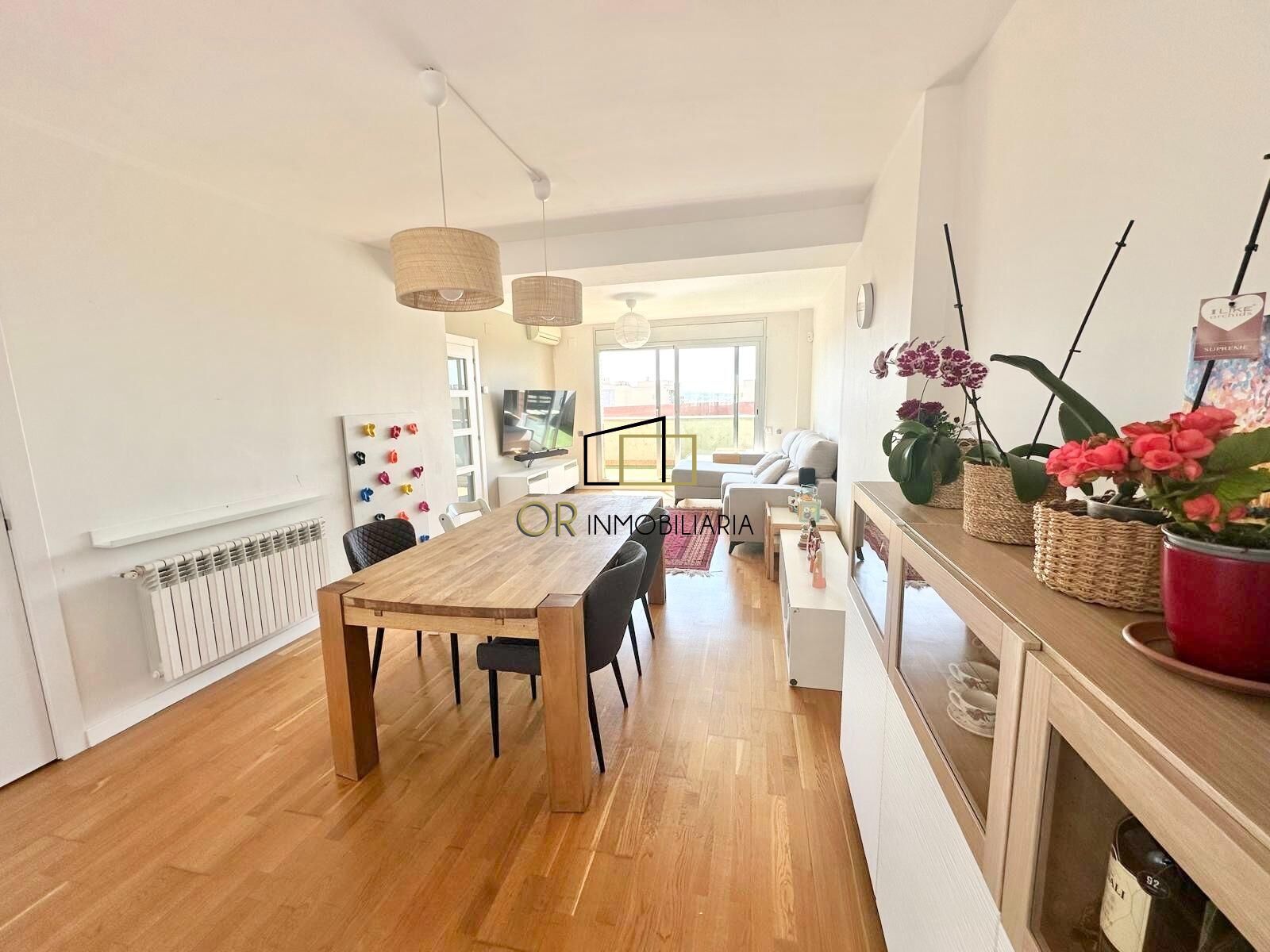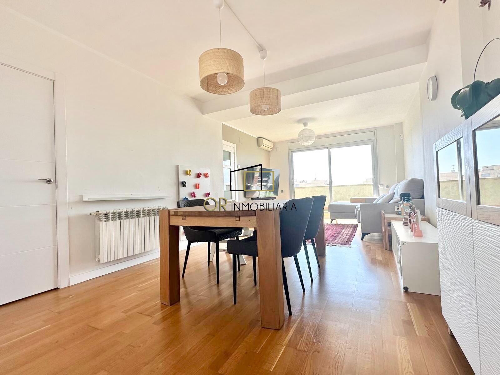 OR Inmobiliaria tiene el placer de presentar este espectacular ático dúplex seminuevo, listo para entrar a vivir sin necesidad de reforma. Se trata de una vivienda luminosa y elegante, con cuatro habitaciones exteriores, terraza y balcón, ubicada en la codiciada zona de Poble Nou de Vilafranca del Penedès.~~La propiedad destaca por su excelente entrada de luz natural y sus cuidados acabados de calidad. Accedemos a la vivienda por la primera planta, destinada a la zona de día, donde encontramos un práctico recibidor con armarios empotrados que ofrecen un cómodo espacio de almacenamiento. El amplio salón-comedor de 25 m² se convierte en el corazón del hogar, con salida directa a una agradable terraza de 15 m² que disfruta de bonitas vistas a la montaña.~~La cocina tipo office, moderna y funcional, está completamente equipada con vitrocerámica y conecta con una espaciosa galería de 12 m², ideal como zona de lavandería. En esta misma planta también encontramos un aseo de cortesía equipado con toallero calefactado.~~A través de unas elegantes escaleras accedemos a la zona de noche, donde un distribuidor con armarios empotrados aporta mayor comodidad y capacidad de almacenaje. Esta planta dispone de cuatro habitaciones exteriores, entre ellas una amplia habitación principal de 15 m² en suite, con baño completo que incluye bañera de hidromasaje, mampara, toallero calefactado y salida a un balcón privado de 3 m². Además, cuenta con una segunda habitación doble de 10 m² con armarios empotrados, una tercera habitación de 9 m² también con armarios empotrados, y una cuarta habitación individual de 7 m². Completa esta planta un tercer baño completo con un elegante plato de ducha, mampara y toallero calefactado.~~La vivienda se encuentra en un estado impecable y forma parte de una finca con ascensor, acceso adaptado para personas con movilidad reducida y plaza de garaje en la misma comunidad. Entre sus acabados destacan los suelos de parquet, cerramientos de aluminio con doble acristalamiento tipo Climalit, puertas de haya, puerta principal blindada, calefacción de gas natural y aire acondicionado con bomba de calor.~~Su ubicación es excelente, a tan solo cinco minutos a pie de todo tipo de servicios como escuelas, institutos, supermercados, estación de tren y autobuses de Vilafranca del Penedès, el Mercado de Sant Salvador, y con rápido acceso a las principales vías como la AP-7, N-340 y C-15. Sin duda, una oportunidad única para disfrutar de una vida cómoda y de calidad en Vilafranca del Penedès.~~Sin duda una oportunidad para vivir cómodamente en Vilafranca del Penedès. ~Llámenos, y con mucho gusto le resolveremos todas sus dudas. ~El precio no incluye gastos de impuestos ni notaría.~